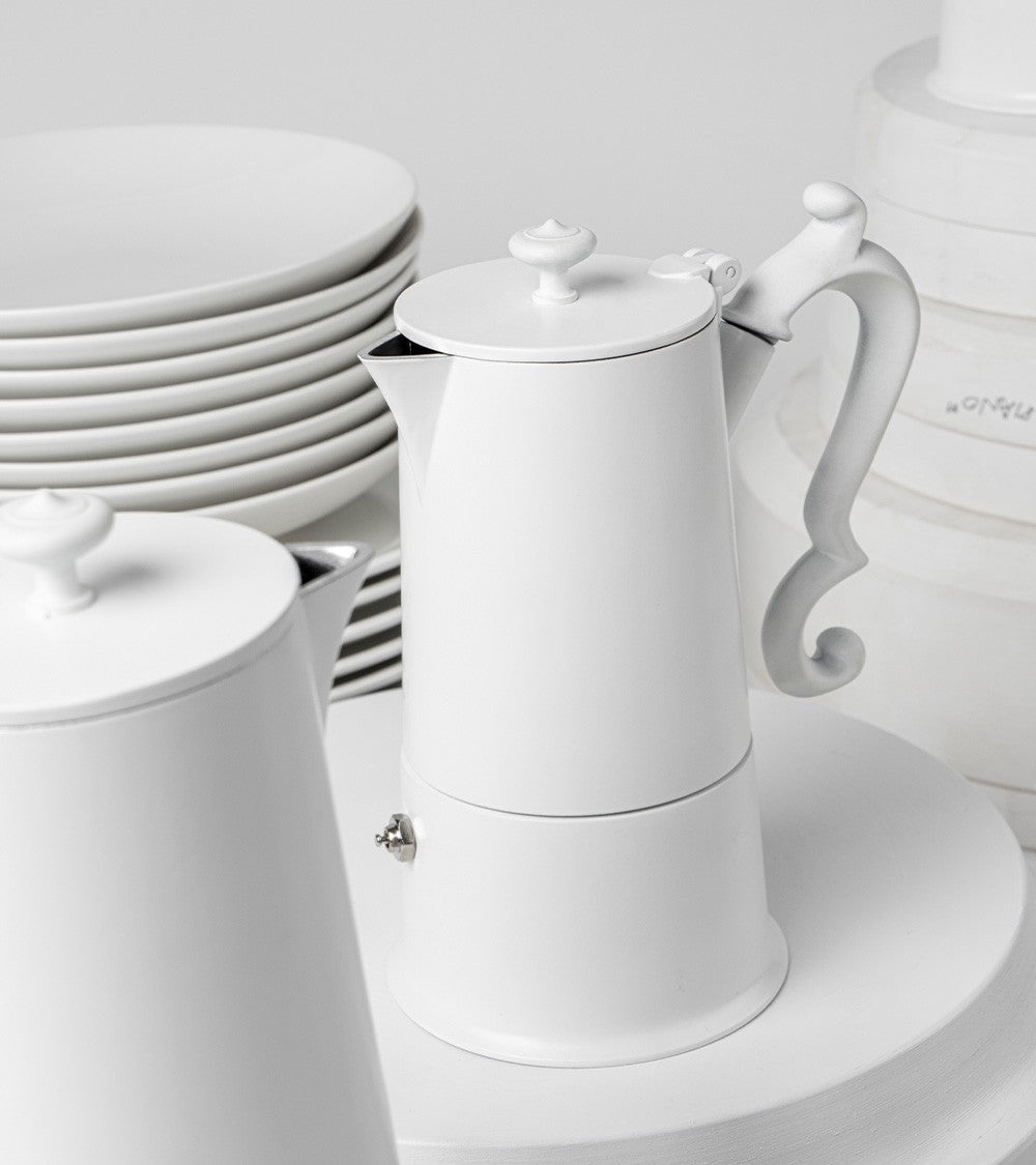 È un oggetto funzionale per la preparazione del caffè ed allo stesso tempo estremamente elegante per servirlo. Sile senza tempo, versatile e pratica.