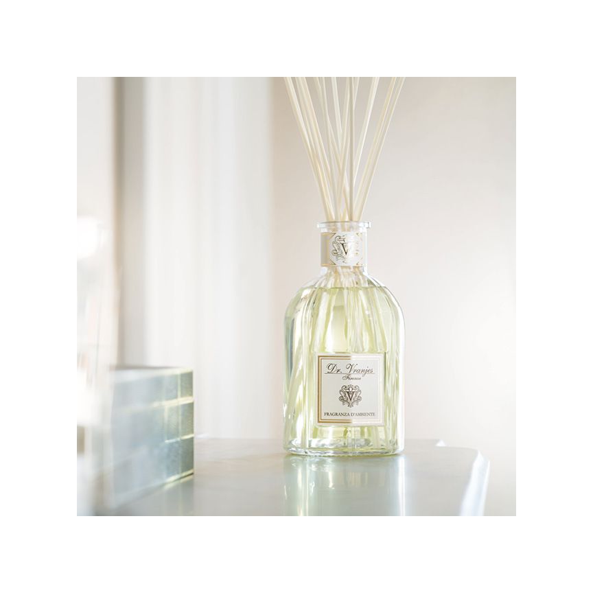 Ambiente: Il diffusore va posizionato al centro della stanza così, al passaggio delle persone, l’aria si muove e la fragranza circola. Per gli ambienti più grandi è consigliato averne due posizionati sui due lati opposti della stanza che si desidera profumare.