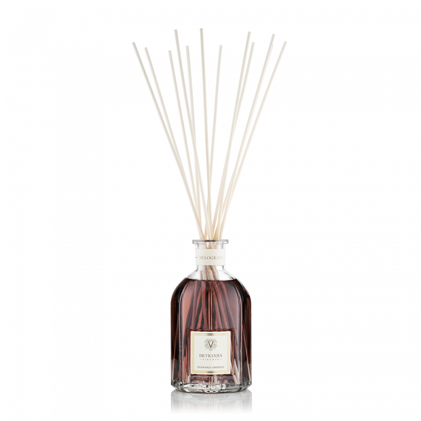 Nel profumo per ambienti Melograno, le note vivaci ed eleganti del cassis, dolci dell’uva e fresche dell’anguria si accordano per riprodurre il gusto del chicco schiacciato tra i denti. Energizzante e perfetto per riempire le zone giorno di dolci e piacevoli sensazioni.