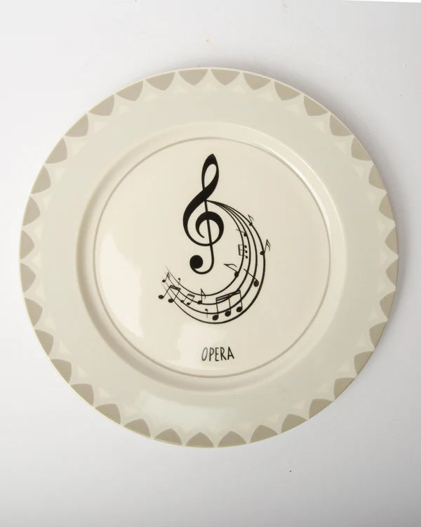 Un piatto in bianco e nero dal mood artistico: la chiave di violino e lo spartito creano un’atmosfera musicale elegante, ideale per chi ama la cultura e la musica classica.