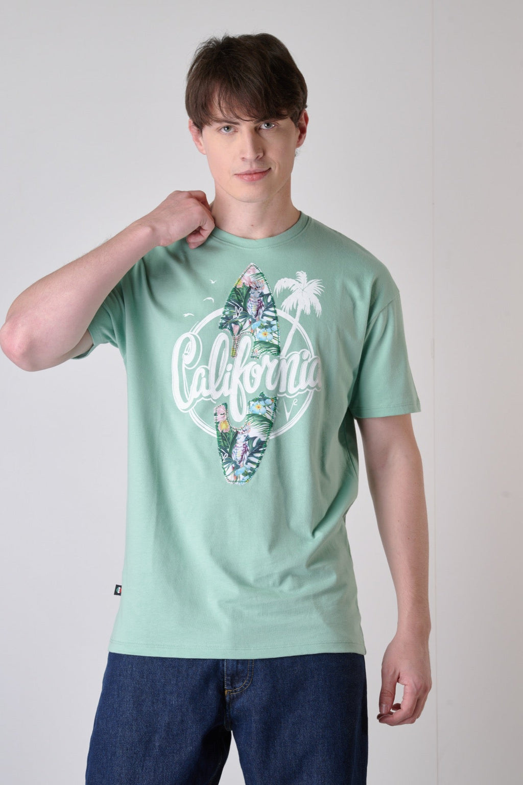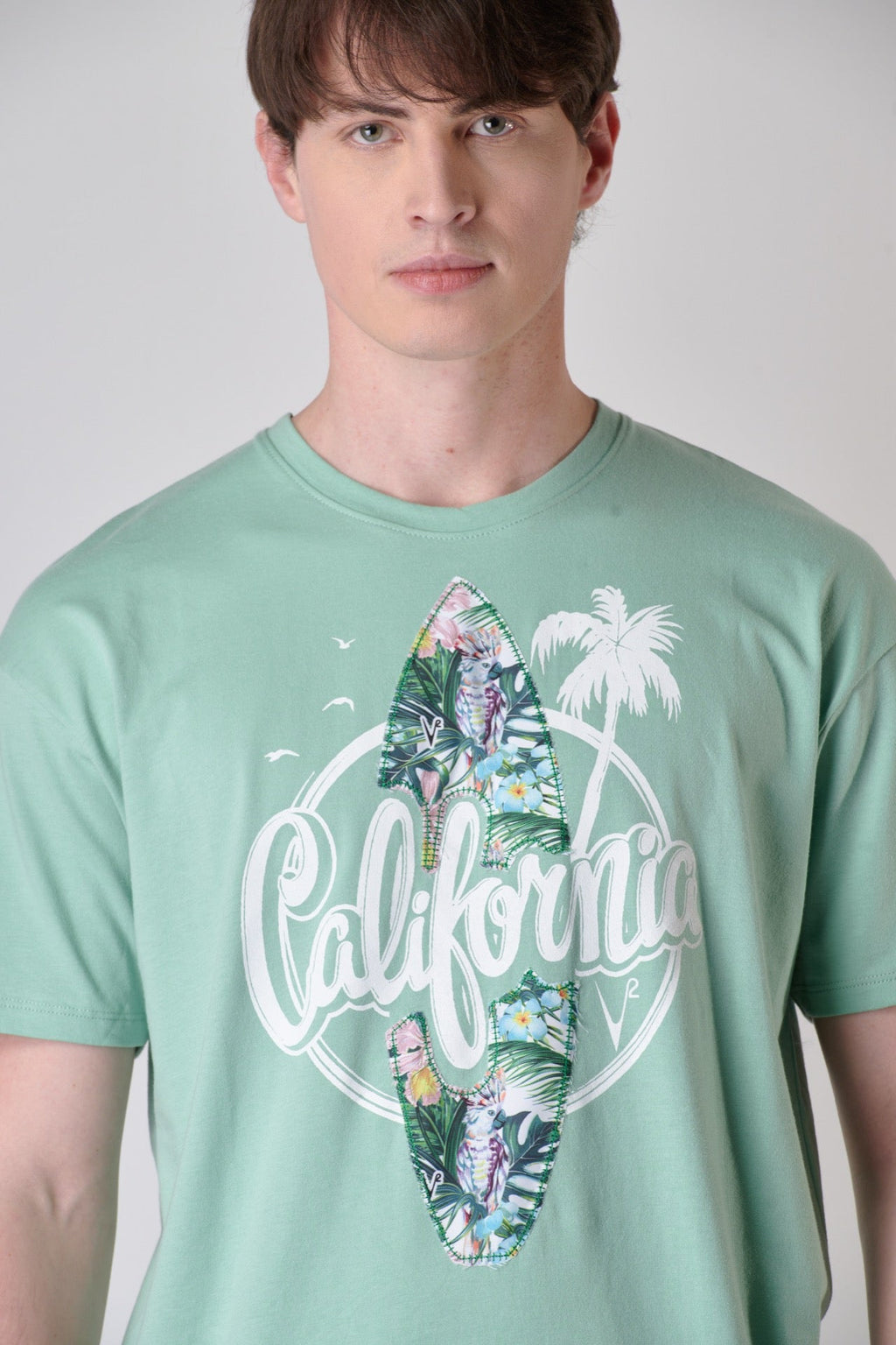 T-SHIRT VERDE MENTA CALIFORNIA CON INSERTO IN TESSUTO