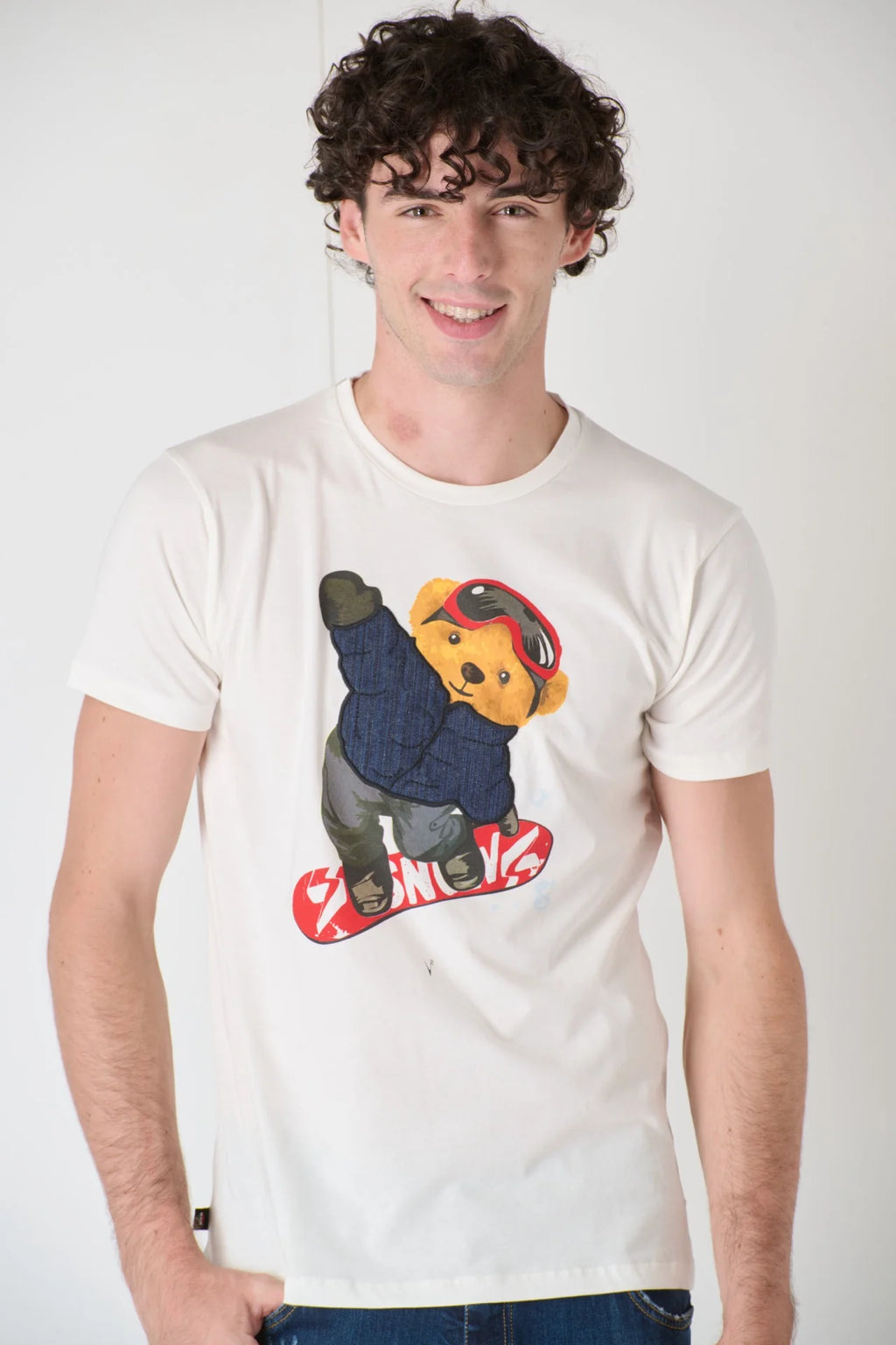 T-SHIRT PANNA TEDDY CON SNOWBOARD