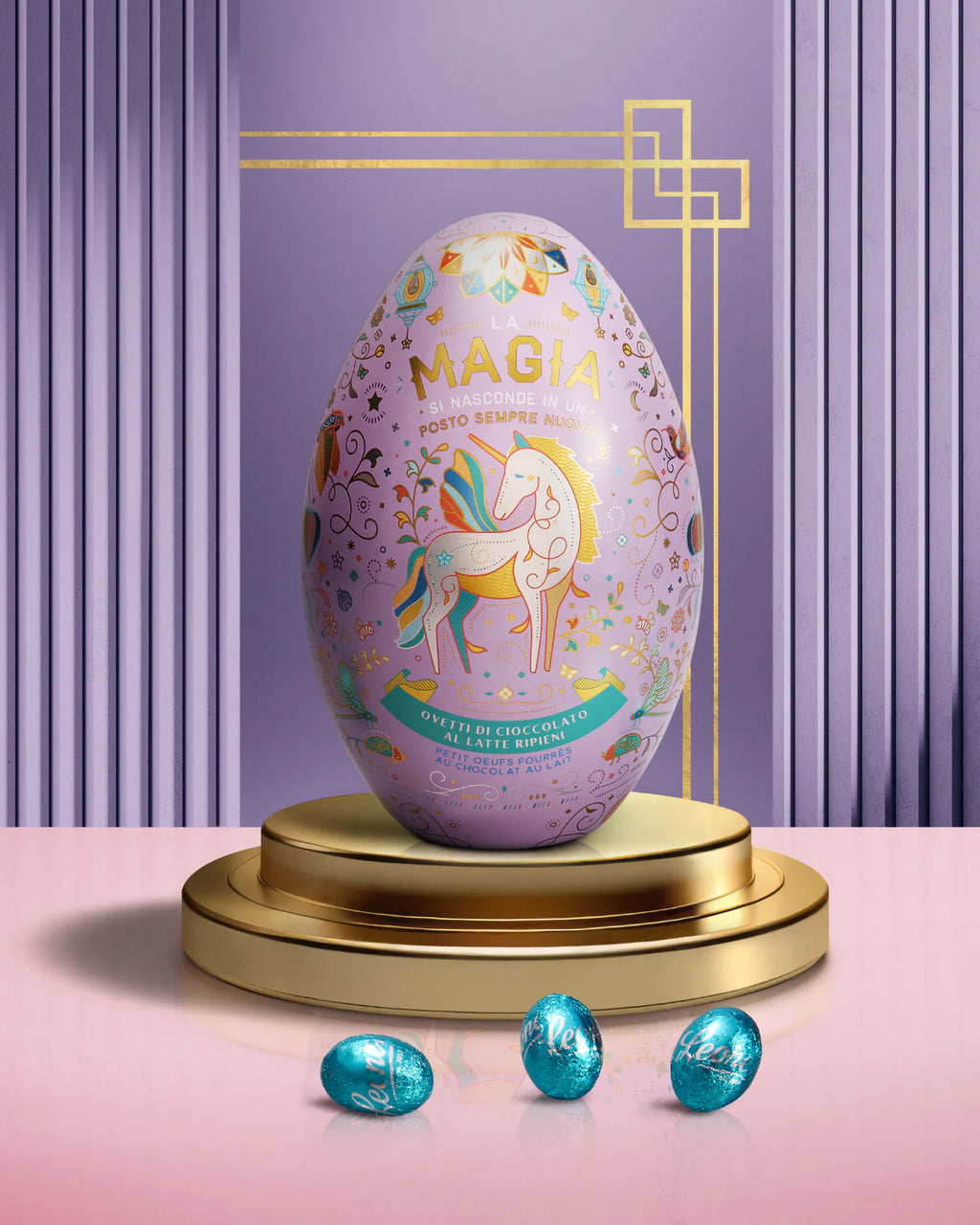 Per rendere ancora più speciale ogni momento, non poteva certo mancare un’elegante e ricercata latta a forma di uovo, che custodisce morbidi ovetti di cioccolato al latte. Un momento di dolcezza da condividere.