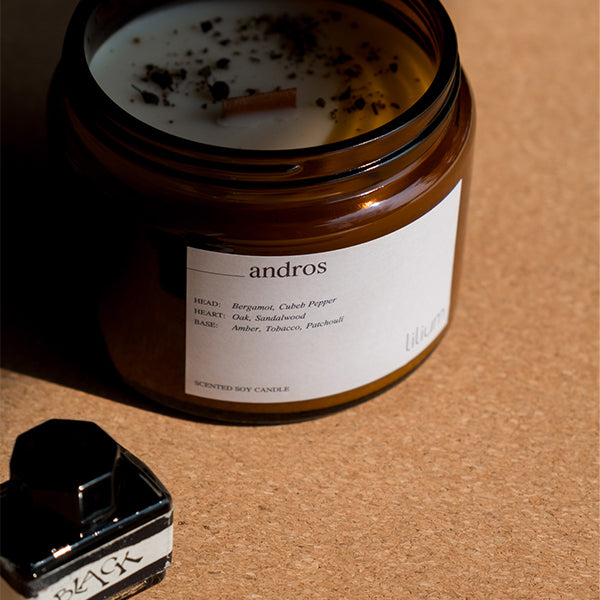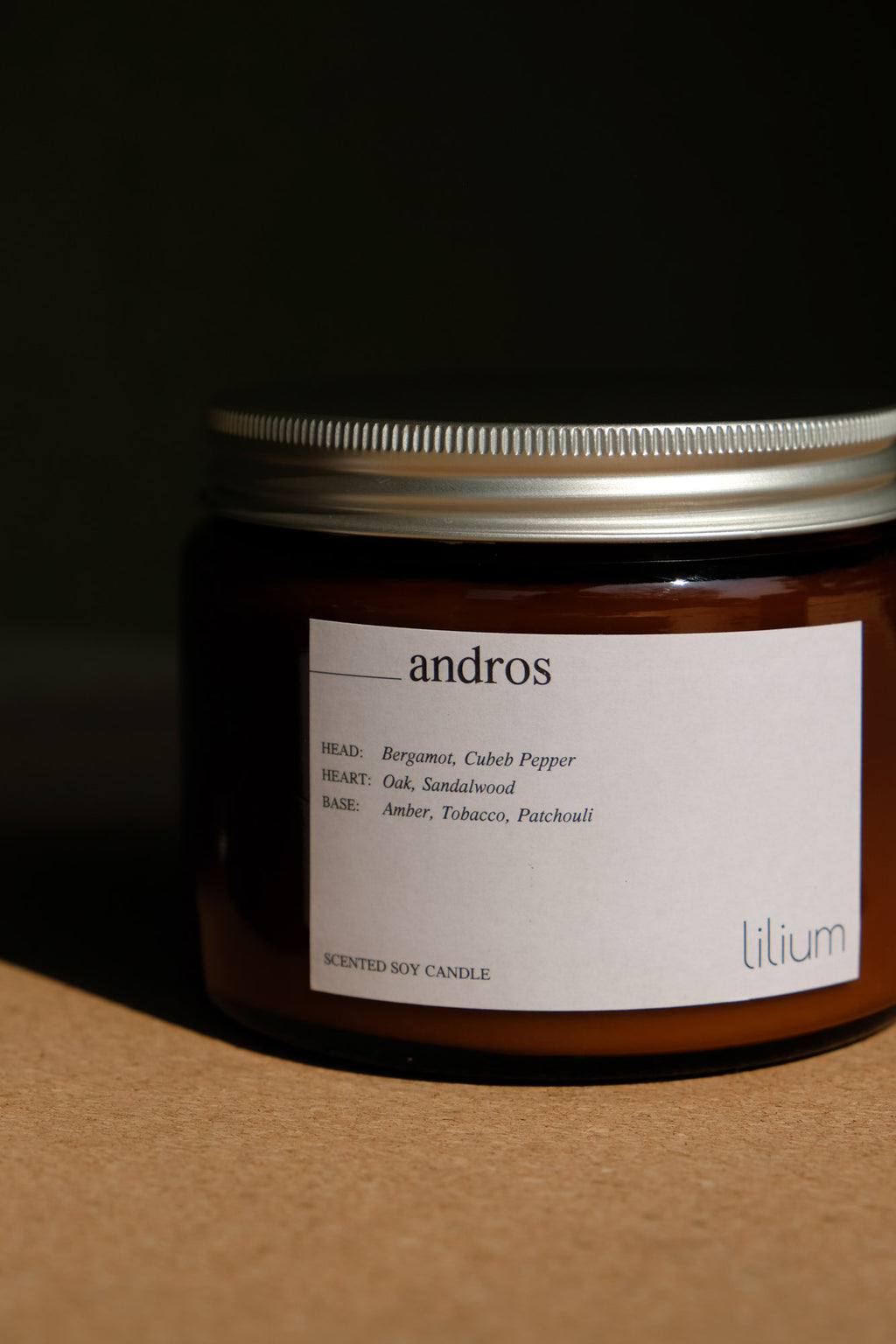 In una seducente miscela dai tratti maschili, Andros raccoglie eleganti e speziate note di bergamotto e pepe di cubeb che aleggiano su un cuore di quercia e sandalo e si posano su un caldo fondo di tabacco, ambra e patchouli.
