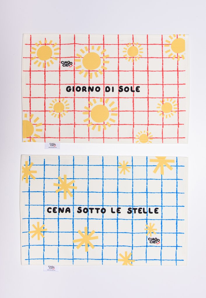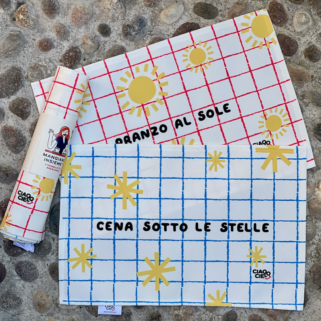 Le Tovagliette CiaoCielo vanno sempre in coppia. Terranno compagnia anche a te e alle persone cui stai mangiando.